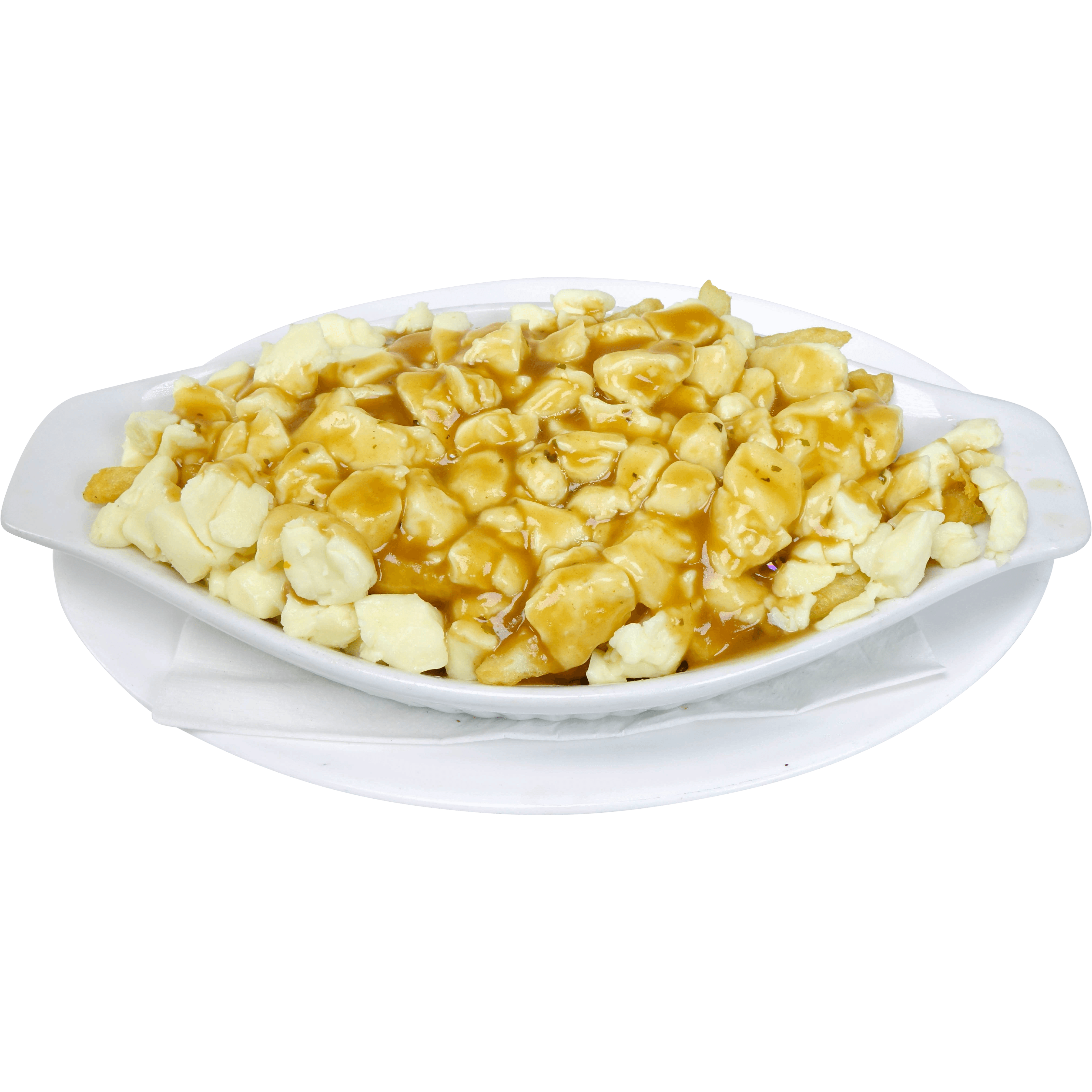 frites, sauce brune ou BBQ et fromage en grains