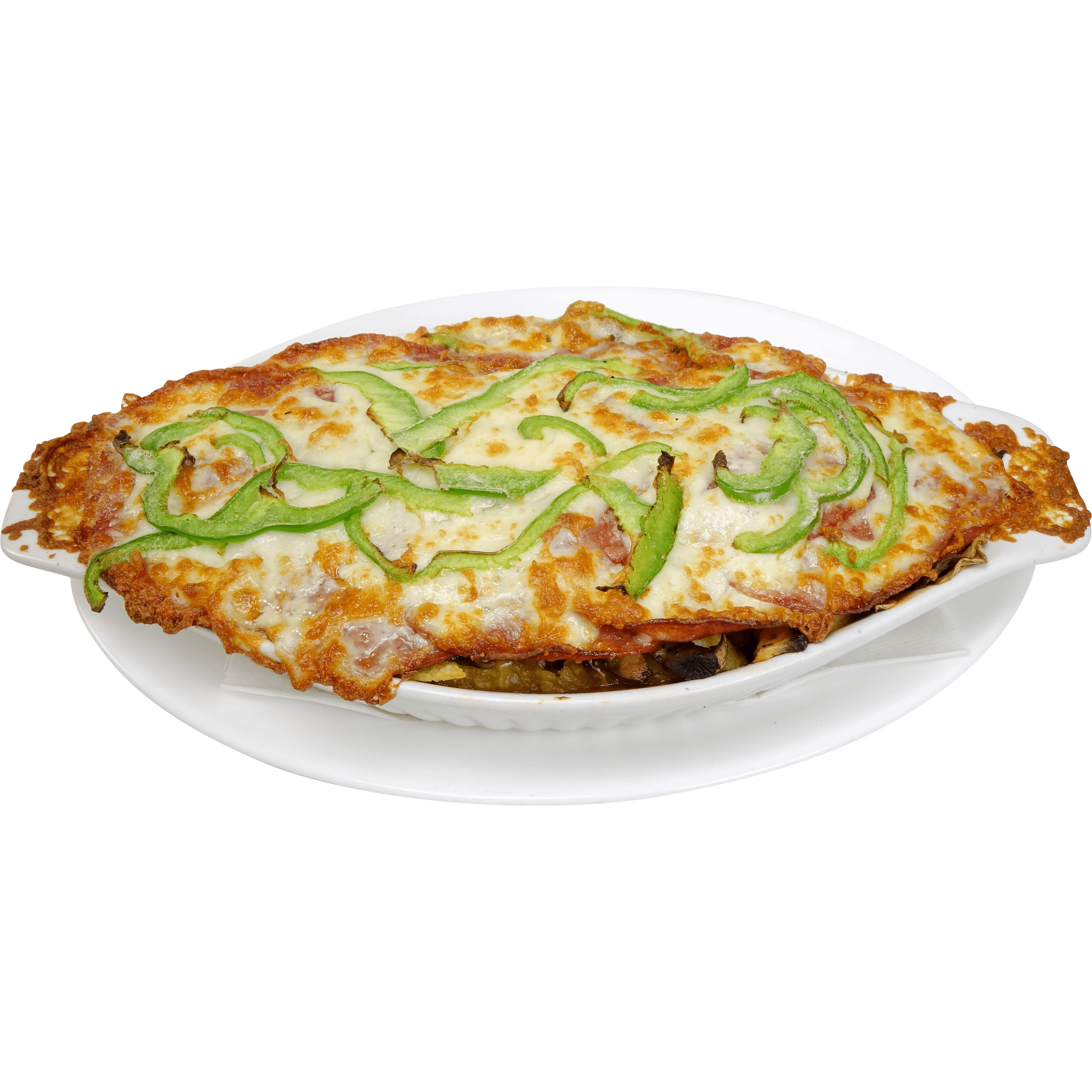 sauce à spaghetti, pepperoni, poivrons, champignons, oignons, mozzarella, bacon