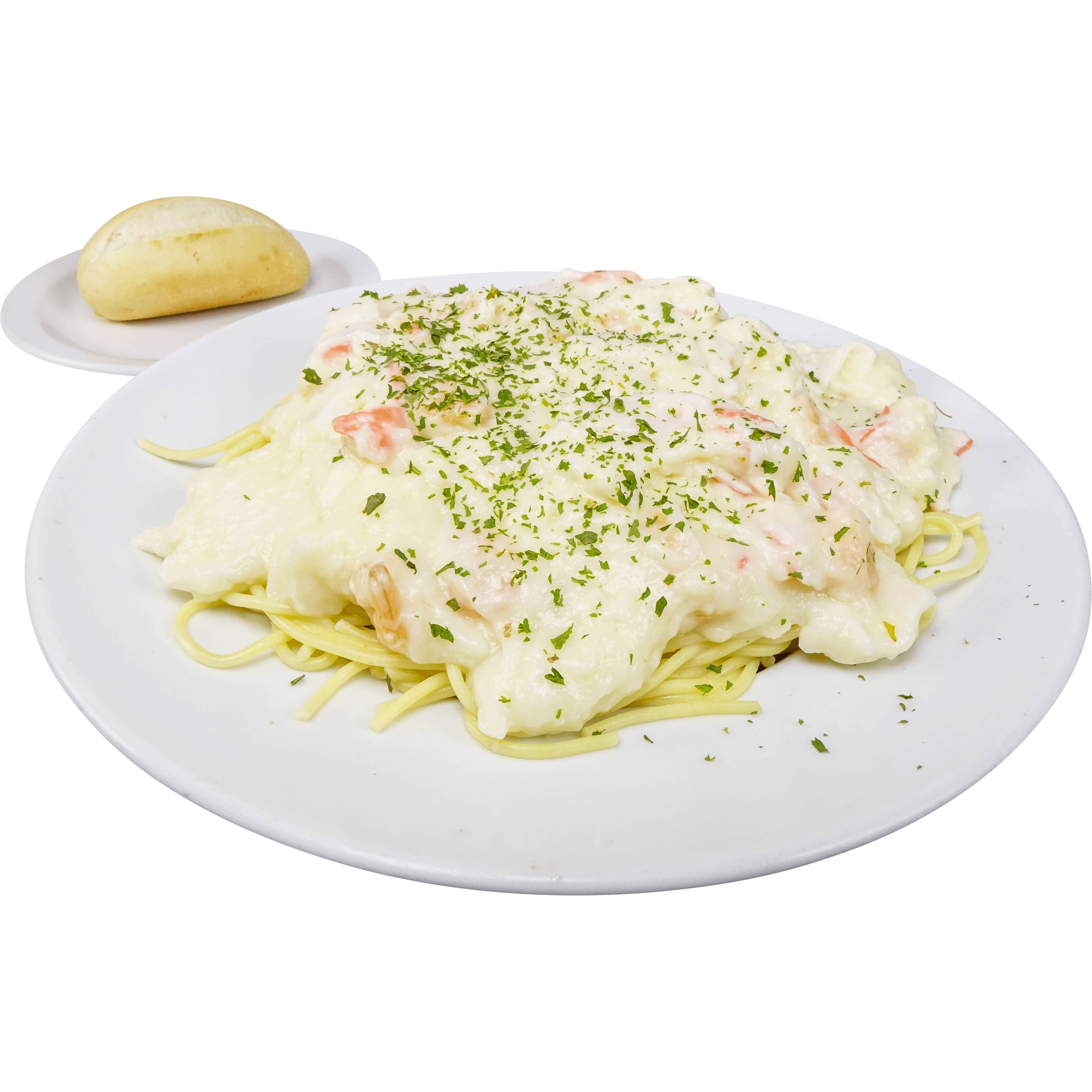 sauce béchamel, pétoncles, crevettes, goberge